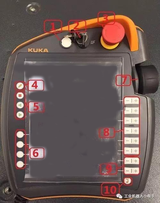 1.機器人示教器線纜熱插拔按鈕(按此鍵后,控制柜不用關機便可拔掉示教器)。